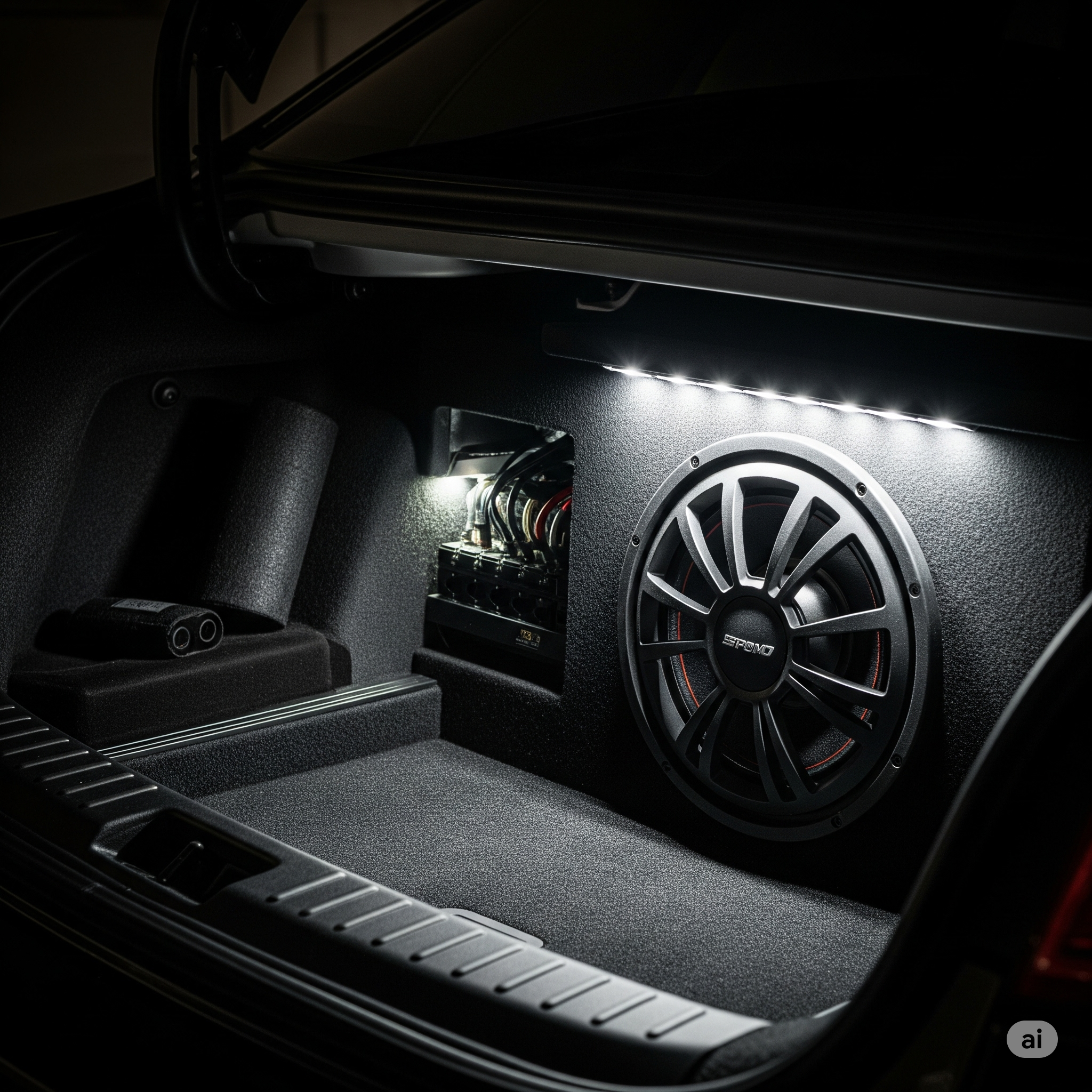 Yes — subs, lights, amp racks, logos — we design it all.